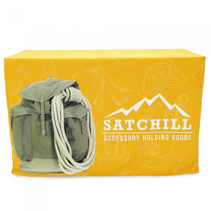 New 4 ft. sized Fitted Table Throw! Get your graphic edge-to-edge custom printed on fitted table throw that is made to fit 4 ft. tables. This option is 4-sided, fully covering the front, back and sides of the table. Our Fitted Table Throws fit snug around the table.