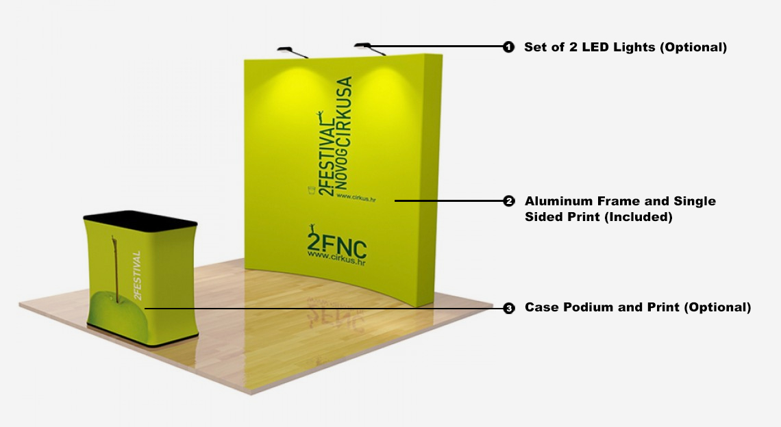 Tags: 8 ft. Straight Fabric Pop up Trade Show Display - 89"h Curve Graphic Package