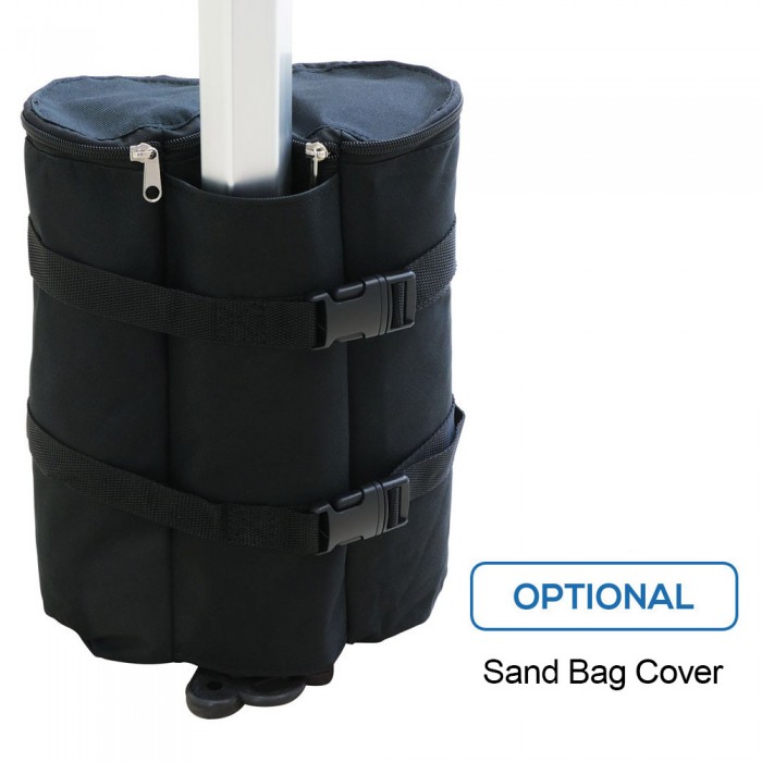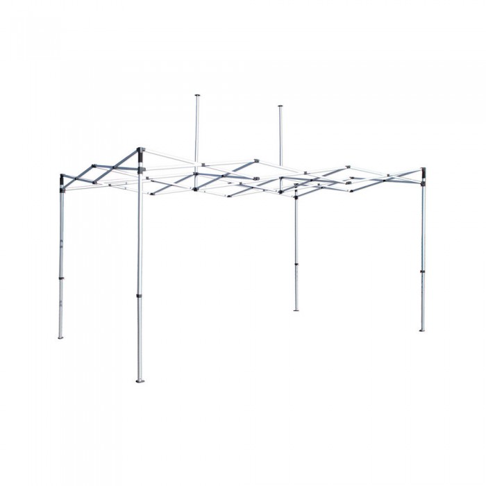 This canopy is a standard 15 ft. x 10 ft. size with five different heights ranging from 10.5 ft. to 11.25 ft. tall. Telescopic legs snap into place. Each hex leg is 1.8 mm thick.