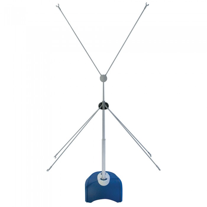 The Zephyr Outdoor Banner Stand supports 2' x 5' to 3' x 6' banners with grommets. The base can be filled with water to add extra weight for outdoor display. A double sided option is available for back to back banner display.