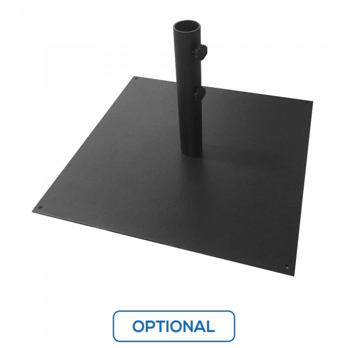 The Skycap Umbrella Square is constructed of aluminum, a steel pole and a plastic hub with latch. Easily stands with use of an umbrella table. No umbrella table?