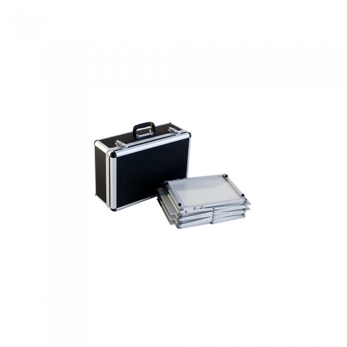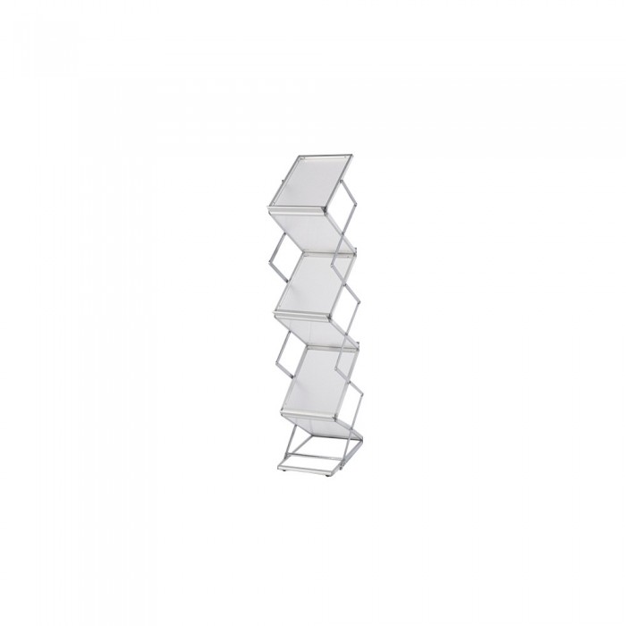 The EZ Frost features 6 shelves for displaying literature with easy set up. The frosted shelves provide a clean and professional look. Single and double widths are available, and both sizes include a hard carrying case for easy transport.